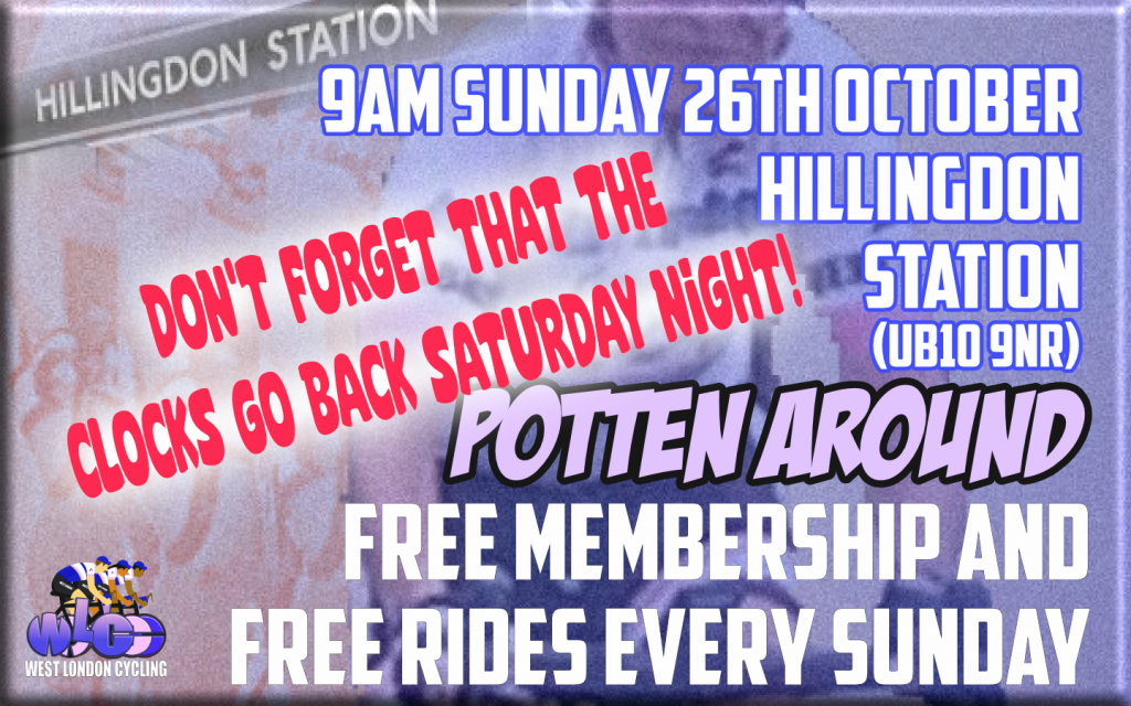 THESE RIDES ARE OPEN TO WEST LONDON CYCLING MEMBERS (SUBSCRIBERS). BOTH MEMBERSHIP AND THE SUNDAY RIDES ARE FREE OF CHARGE.