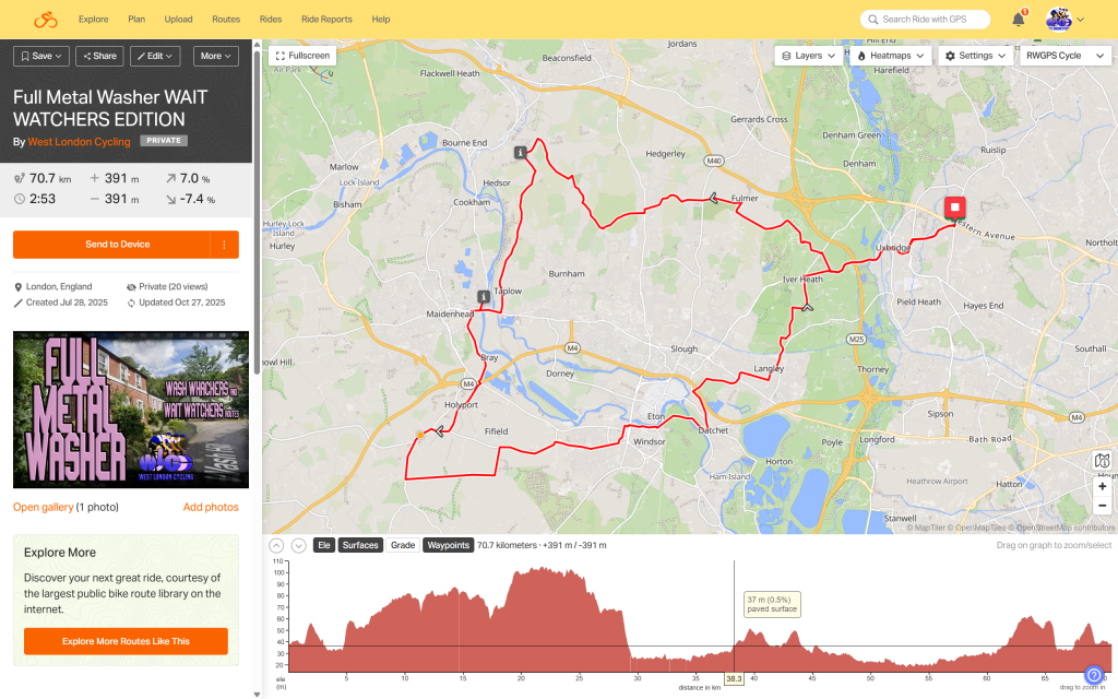 THE FULL METAL WASHER Wait Watchers Edition GPX ROUTE 71km 391m ascent