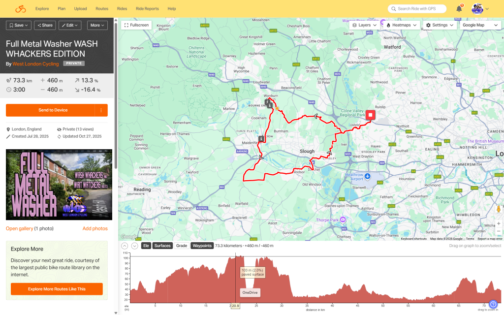 Another ‘brand spanker’ route from your Free Membership and Rides club, West London Cycling.