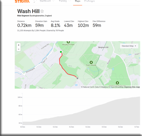 Incidetally, after the ride we will look at Strava times up Wash Hill and reward the best male and female rider.