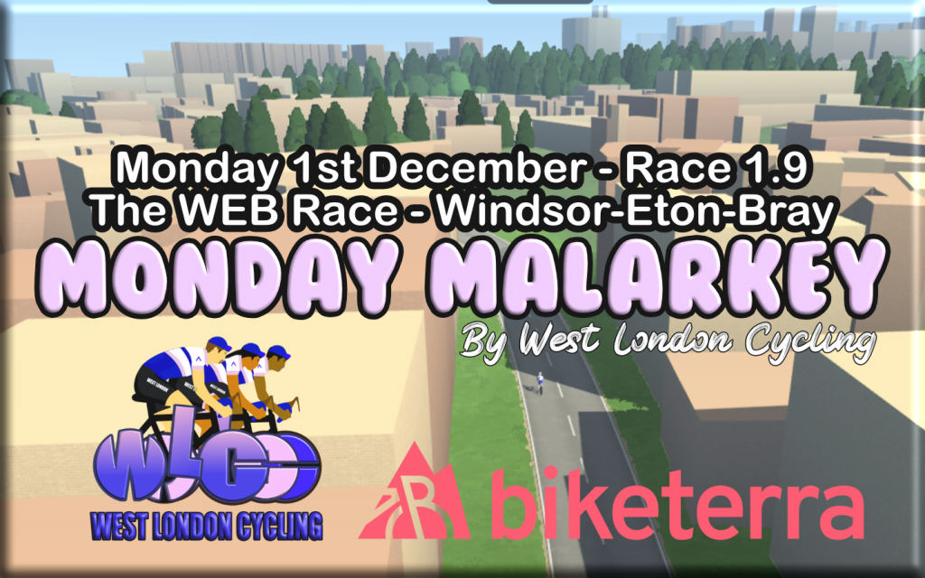 Monday Malarkey on Biketerra Race 1.9 takes place around Windsor as we head west out of London … expect some Strava segments, it’s the WEB Race (Windsor-Eton-Bray)