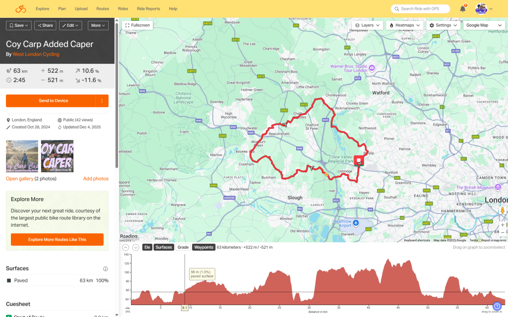 As with every year, we round off 2025 with our traditional Coy Carp Caper Ride. Wednesday 31st December, 9am from Hillingdon Station (UB10 9NR)