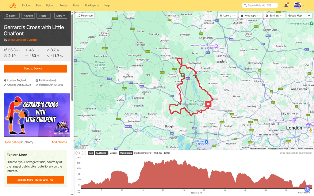 Gerrard’s Cross with Little Chalfont comes from the vaults of West London Cycling’s extensive and comprenhensive archive of local cycling routes (founded 2021). There is a cafe stop at Rowan’s Garden Centre.