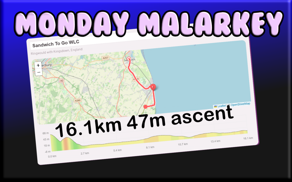Sandwich, in South East Britain seemingly leant its name to food eaten between two slices of bread, however the cuisine was actually named after the Earl Of Sandwich who took his name from the small town. Once an important port in past centuries (and the town has quite a role in English history) but in modern times is a charming and pretty town made up of historic buildings and is well worth a visit if you are in the area. This Monday Malarkey course has very little climbing and should be a fast race but make sure that stay with the peleton on that early ramp.