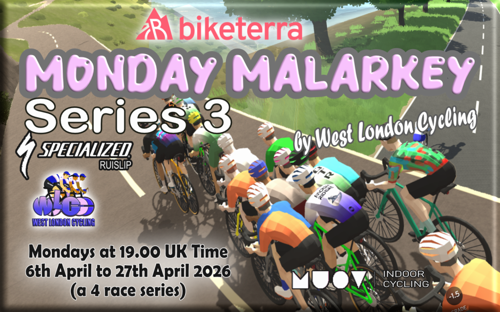 Monday Malarkey continues into 2026 and we have 13 races lined up for you between 5th January and 30th March 2026, with your best 13 (General Classification) or best 8 (Best of 8) results counting towards the two general series classifications, plus a Women’s Classification based on all 13 races. The first rider in each race will score 100 points, second place 99 points, third place 98 points and so on ….