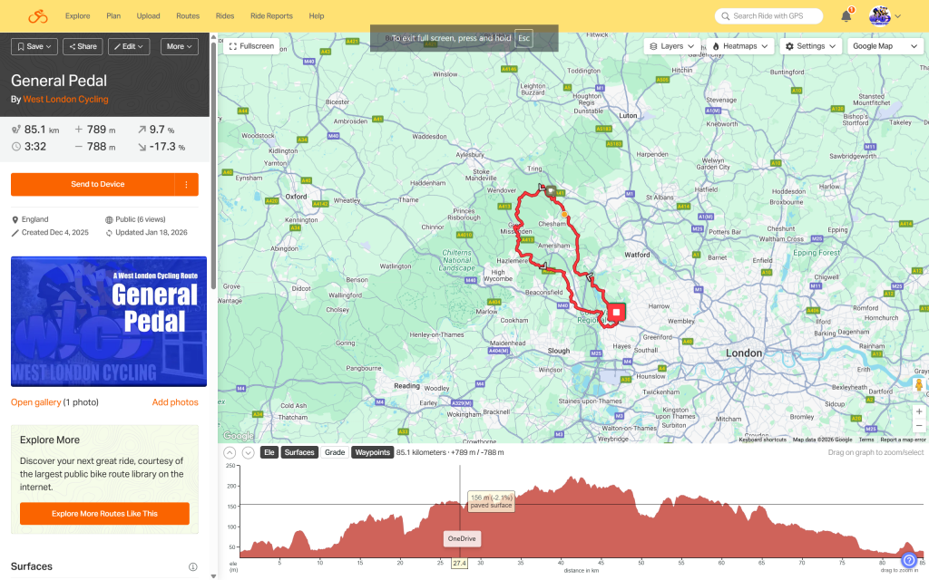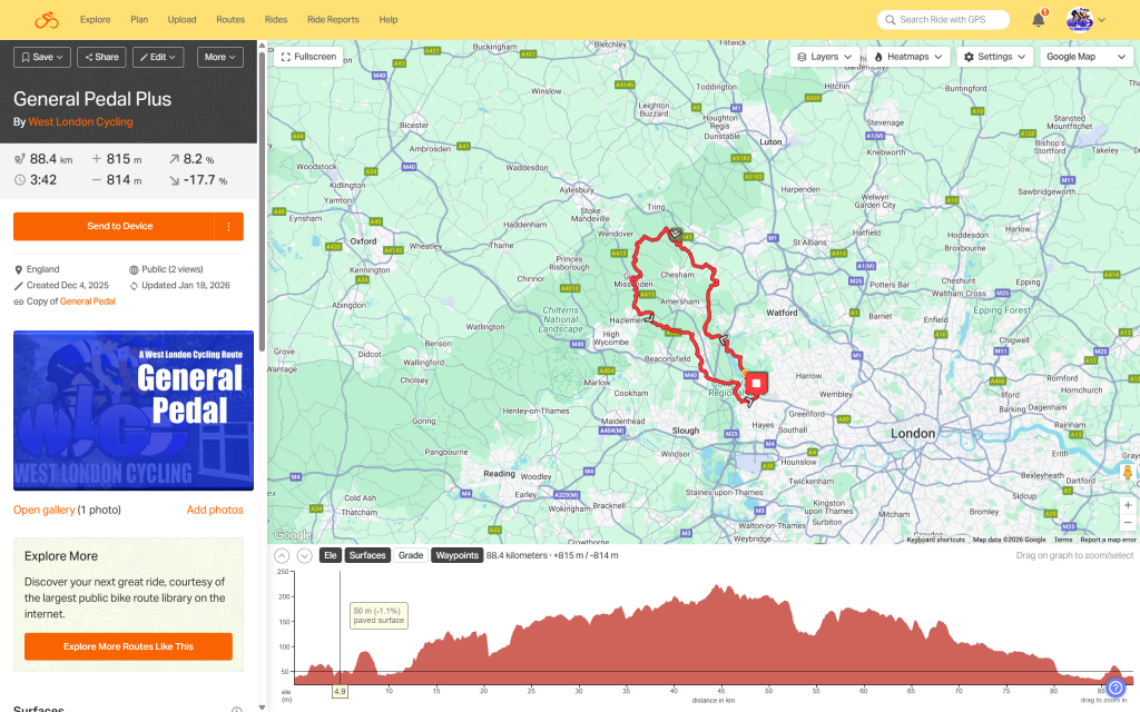 General Pedal is a Chiltern special with a great coffee stop and yet another original ride created by West London Cycling. For a Chiltern ride the ascent is