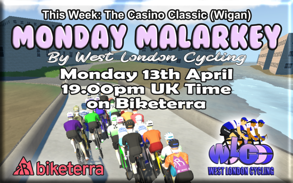 Monday Malarkey continues into April 2026 and we have 4 races lined up for you between 6th April and 27th April 2026, with your best 4 (General Classification) or best 3 (Best of 3) results counting towards the two general series classifications, plus a Women’s Classification based on all 4 races. The first rider in each race will score 100 points, second place 99 points, third place 98 points and so on ….