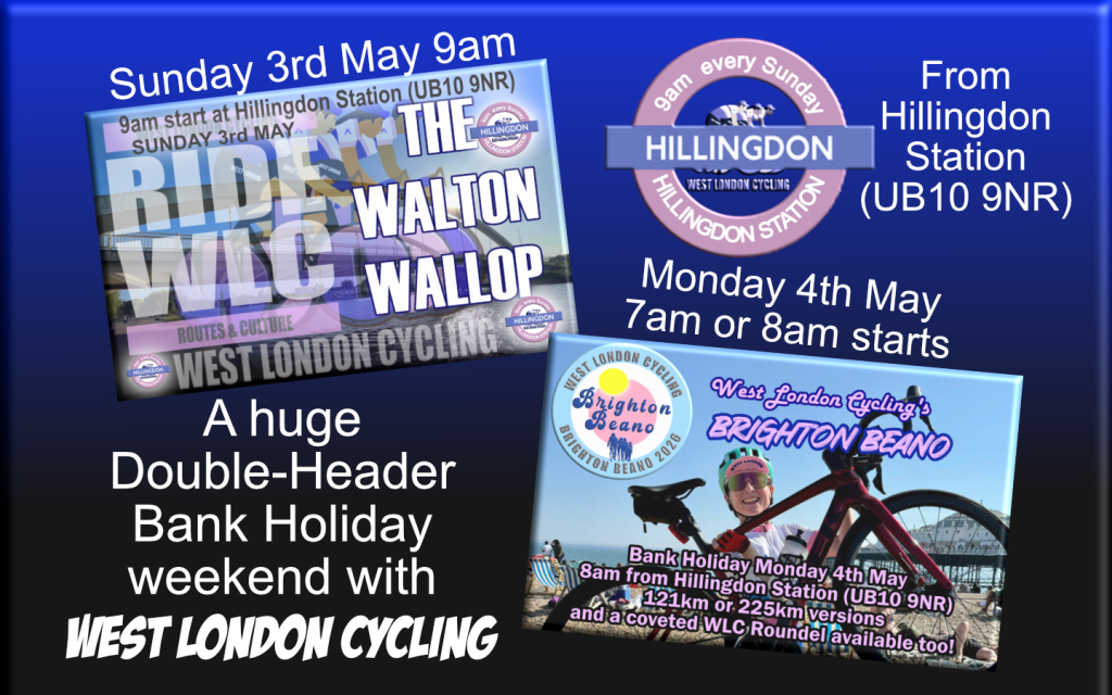 The Walton Wallop is another all new addition to the extensive library of West London Cycling’s original routes …. and we think you’ll love it … join in and find out why!