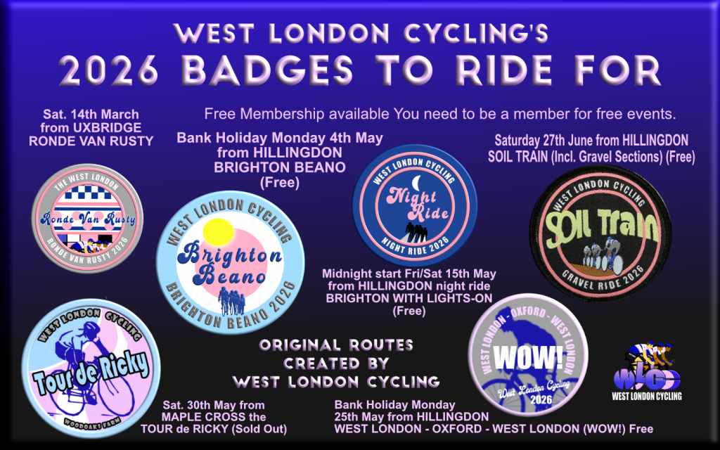 THESE RIDES ARE OPEN TO WEST LONDON CYCLING MEMBERS (SUBSCRIBERS). BOTH MEMBERSHIP AND THE SUNDAY RIDES ARE FREE OF CHARGE.