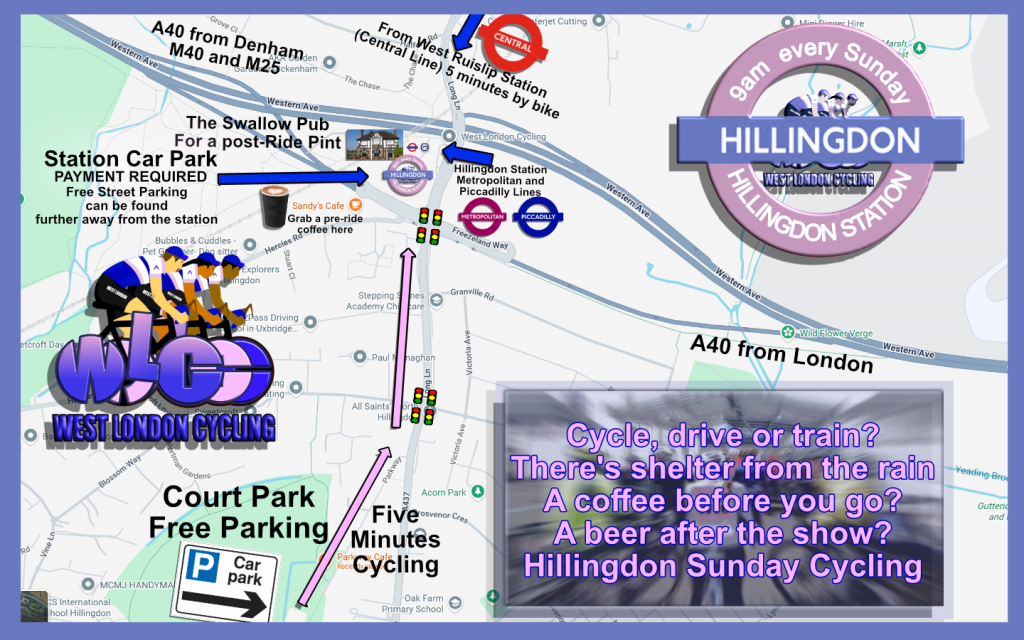 Hillingdon Station has proved to be an excellent Sunday Ride start Point and Rendezvous for cyclists! A great gateway to the Thames Valley and the Chilterns. West London Cycling creates its own original routes for you to enjoy.
