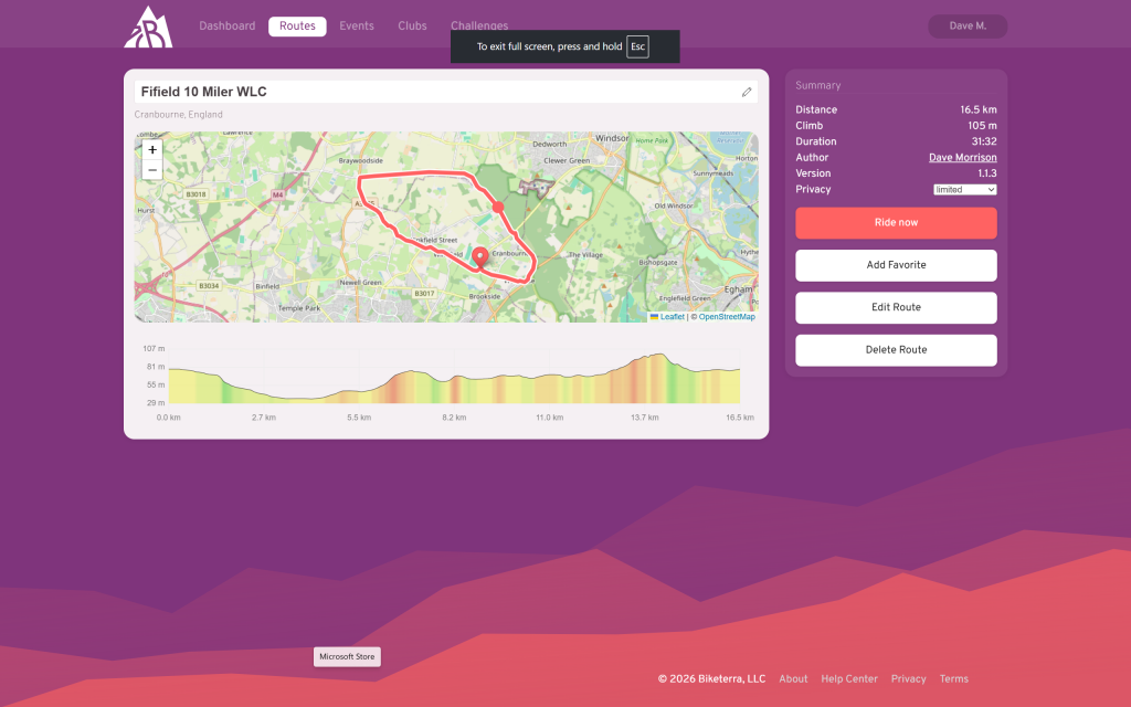 STAGE 10: 23rd November Tour de RickTerra 15.3km 94m ascent (England)