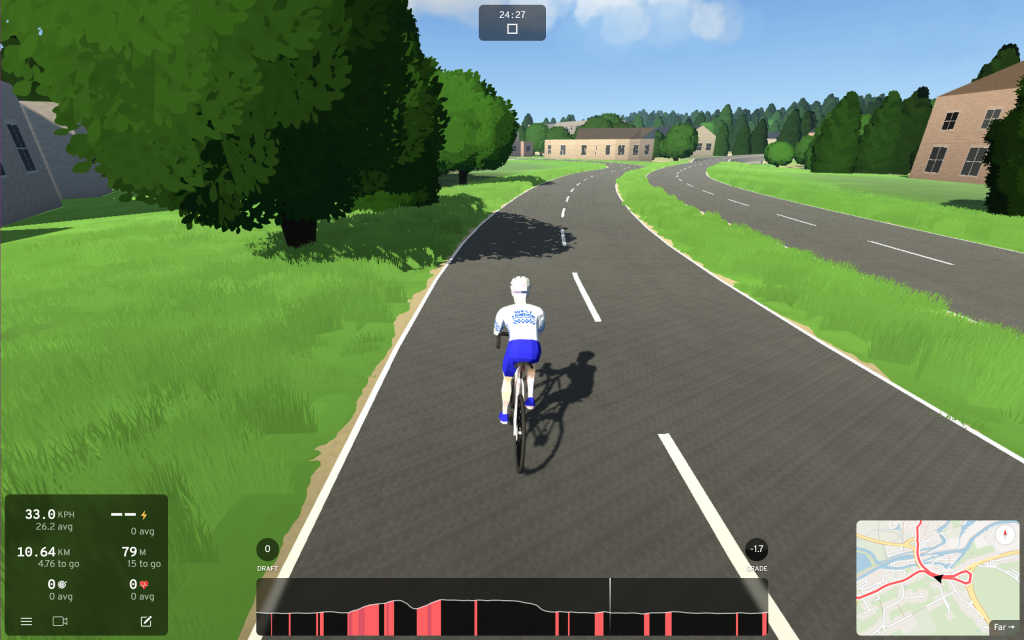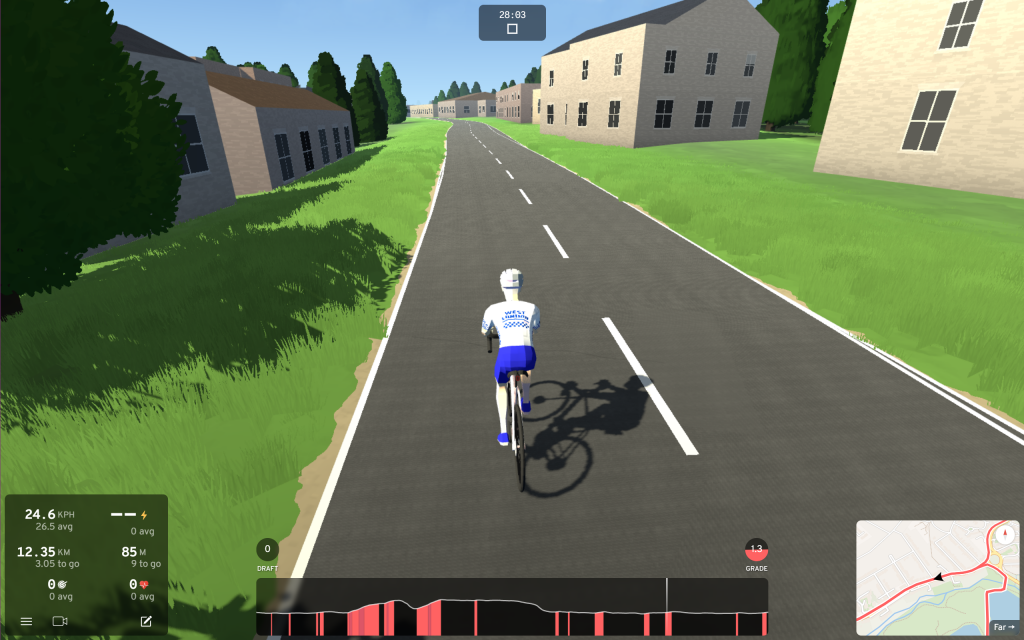 BikeTerra is a free platform (with a premium option) for Smart Trainer users that allows for the creation of real life routes online (bored of the Zwift and MyWhoosh routes yet anyone?). The created route will replicate the bends and gradients and recognise buildings and trees (although obviously it doesn’t distinguish architecture and tree type (yet)). So we have created a 10mile Tour de RickTerra course for a little bit of indoor training when the weather is bad … it is looped so you can do as many loops of Ricky (including the aquadrome) as you like. Biketerra is free so what are you waiting for, sign up now!