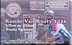Saturday 14th March 9am from The Rusty Bike Cafe, Fassnidge Park, Uxbridge, UB82UW …. RONDE VAN RUSTY 57km and 85km Route Options FREE ENTRY